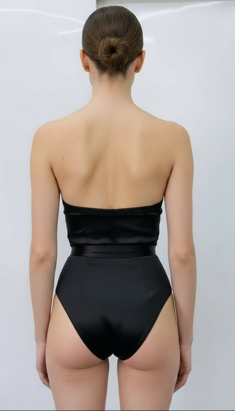 Black Satin Corset Bodysuit